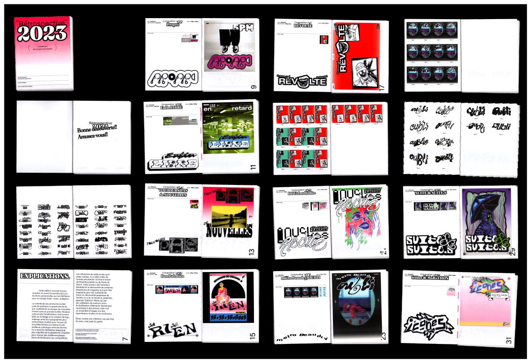 Pendant cette année l’amélioration c’est surtout faite sur le titrage et la création de logo, mélange entre les typographies plus recherchées, fouilles pour trouver de nouvelles formes aux lettres et une meilleure rythmique entre les formes.