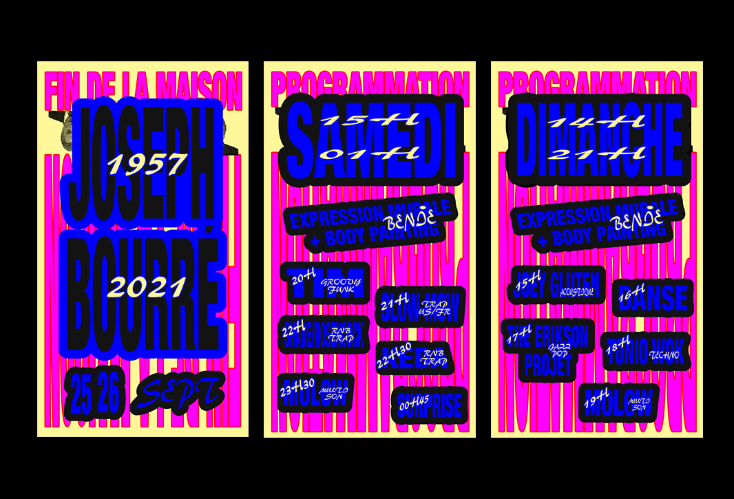 Communications autour de l'événement « Joseph Bourré », un festival rendant hommage à l'ancien lieu utilisé par le collectif.
