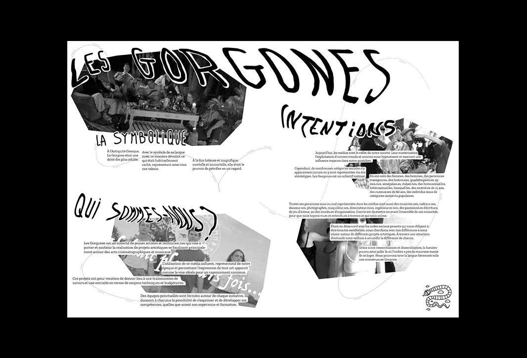 Création de l'identité visuelle et de la conception du site web pour l'association « Les Gorgones », un collectif de jeunes artistes et technicien·nes qui vise à porter et soutenir la réalisation de projets artistiques.