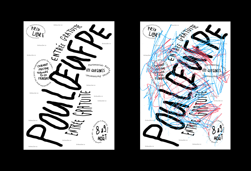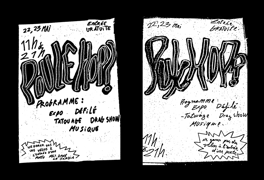 Différentes identités visuelles pour les festivals PouleHope, réalisées en été 2020 et au printemps 2021.